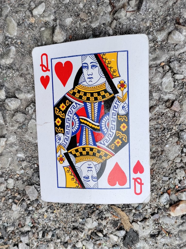 As I was doing this I realised that there was a particular card that I wanted to find, and then set about looking for the queen of hearts. I eventually found her loitering by the wheel of a parked car in the middle of the road.