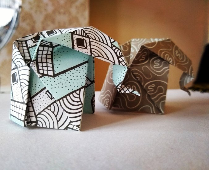 But now and again I try my hand at origami again to make my brain work differently. It’s more like art as a puzzle for me as I still need to follow other people’s patterns. The elephants here were folded from this lovely pattern at spruce crafts.
