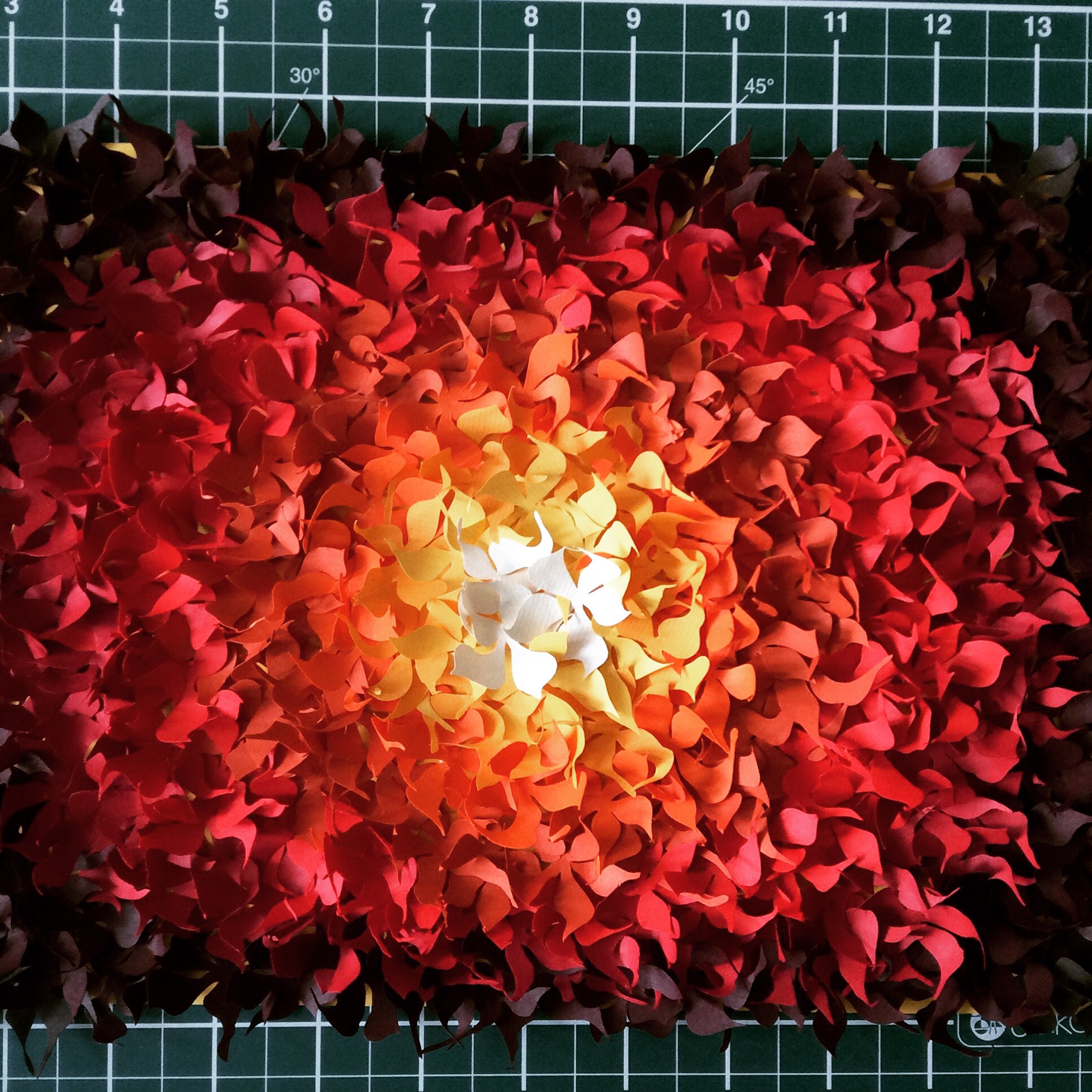 Then I will probably add some paper flowers, which are becoming a bit of a signature feature. I have stockpiles of these. I have cut so many of these now that I can cut them free hand, without really paying too much attention, in front of the telly.